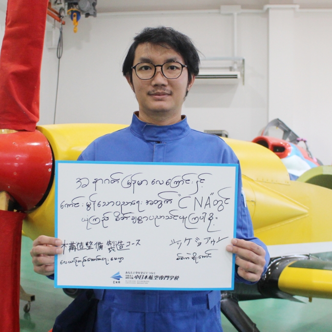 学校は日本の中心に位置する岐阜県にあり、名古屋も近くて、見るところも多く自然豊かたな場所です。学校には飛行機とヘリのコースがあり、情熱に溢れた優しい先生に指導を受け、二等航空整備士をめざし勉強しています。