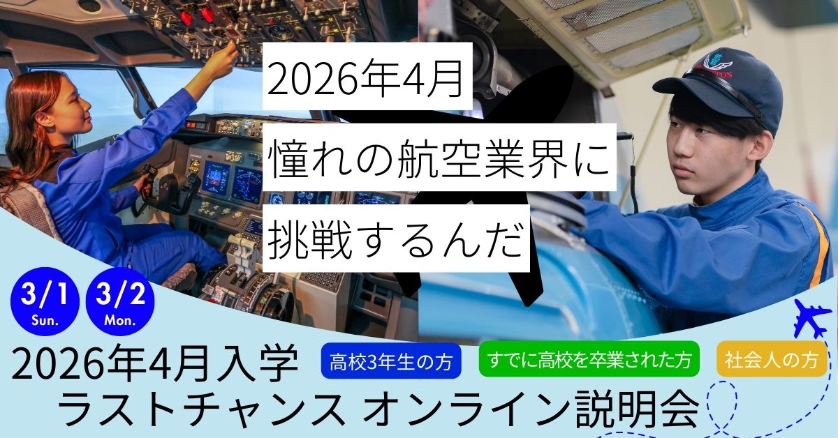 【航空業界に進学するかまだ迷っている高校3年生、すでに高校卒業された方、社会人の方へ】2026年4月入学ラストチャンス オンライン説明会
